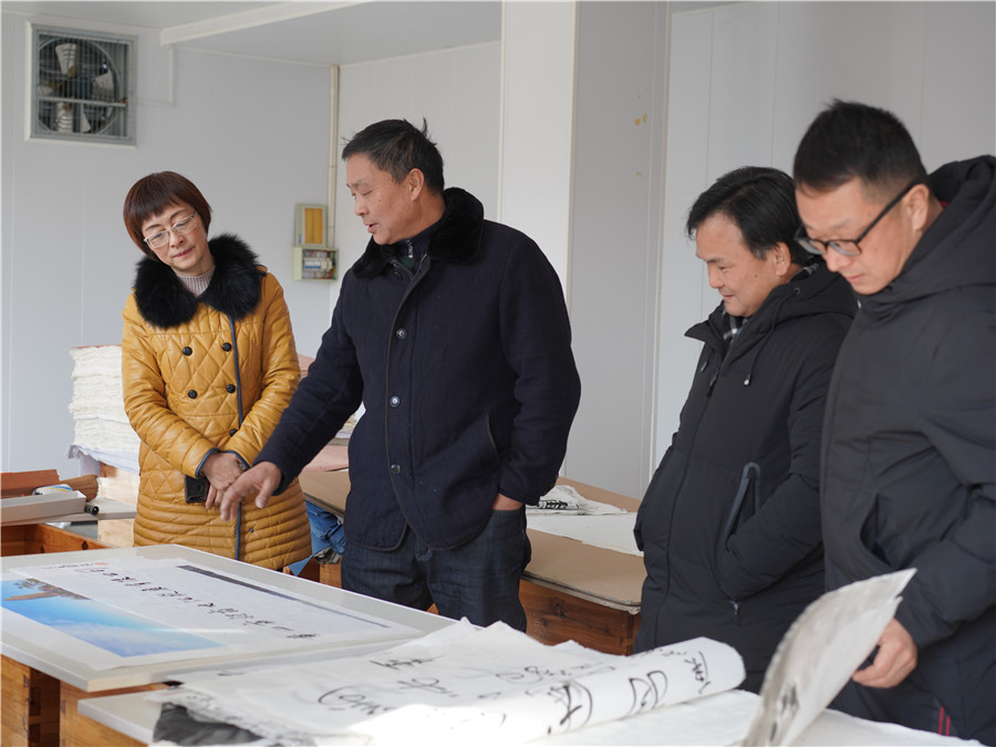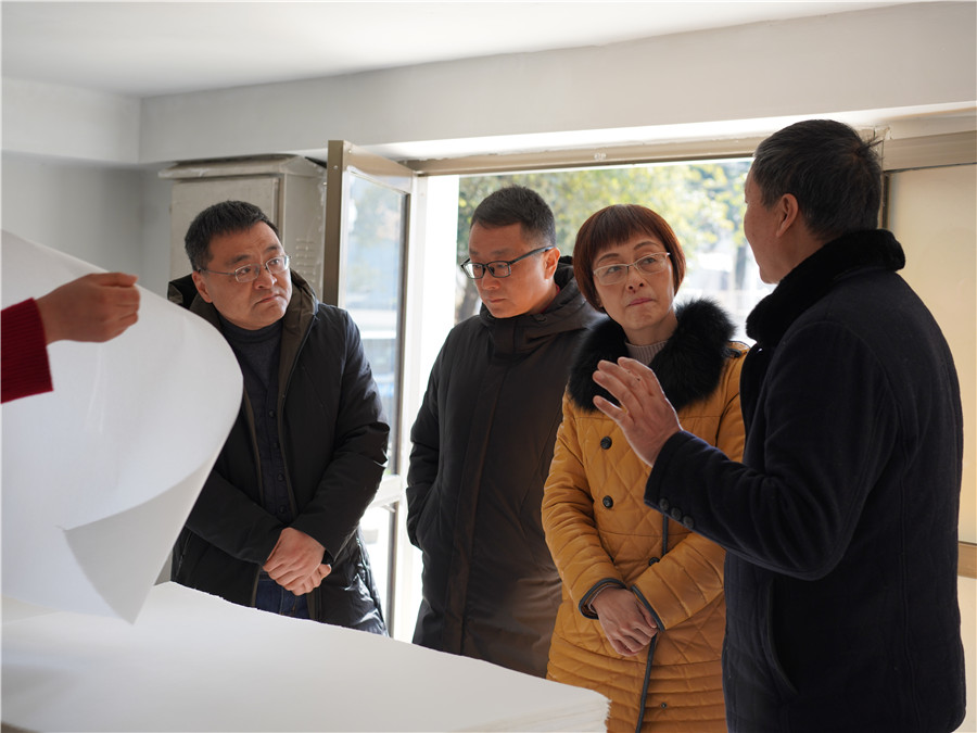 1月11日由市文旅局副局長(zhǎng)王迎春帶隊(duì)的,黃山市非物質(zhì)文化遺產(chǎn)傳習(xí)基地驗(yàn)收組到我司黃山市凝霜文化發(fā)展有限公司進(jìn)行調(diào)研工作。