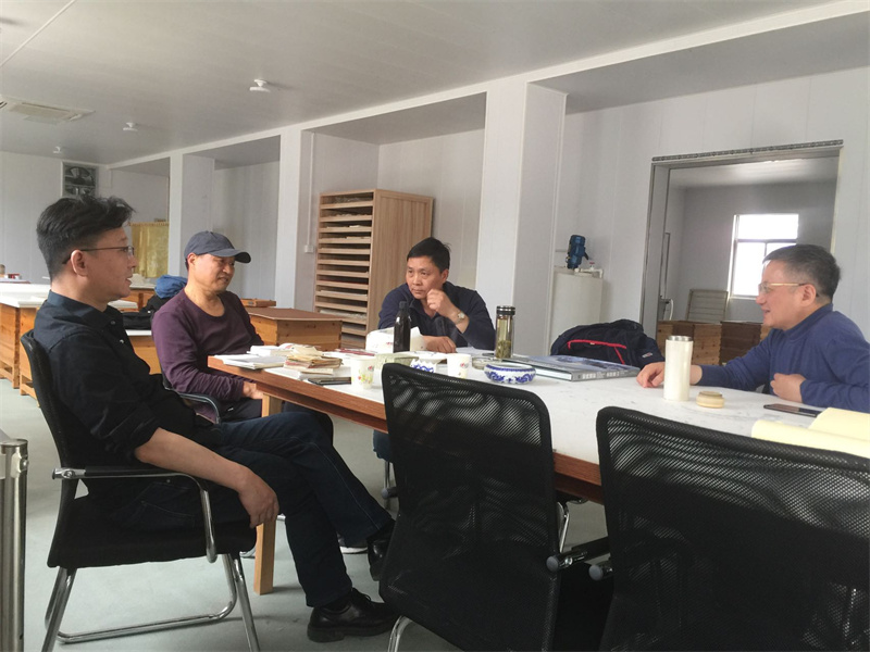2021年4月24日,中科大人文與社會科學(xué)學(xué)院院長湯書昆、科學(xué)傳播研究中心主任何勇和文化規(guī)劃專家李憲奇來公司指導(dǎo)古法楮皮紙制作以及公司文化、發(fā)展傳播指導(dǎo)。給予公司更好的發(fā)展方向。